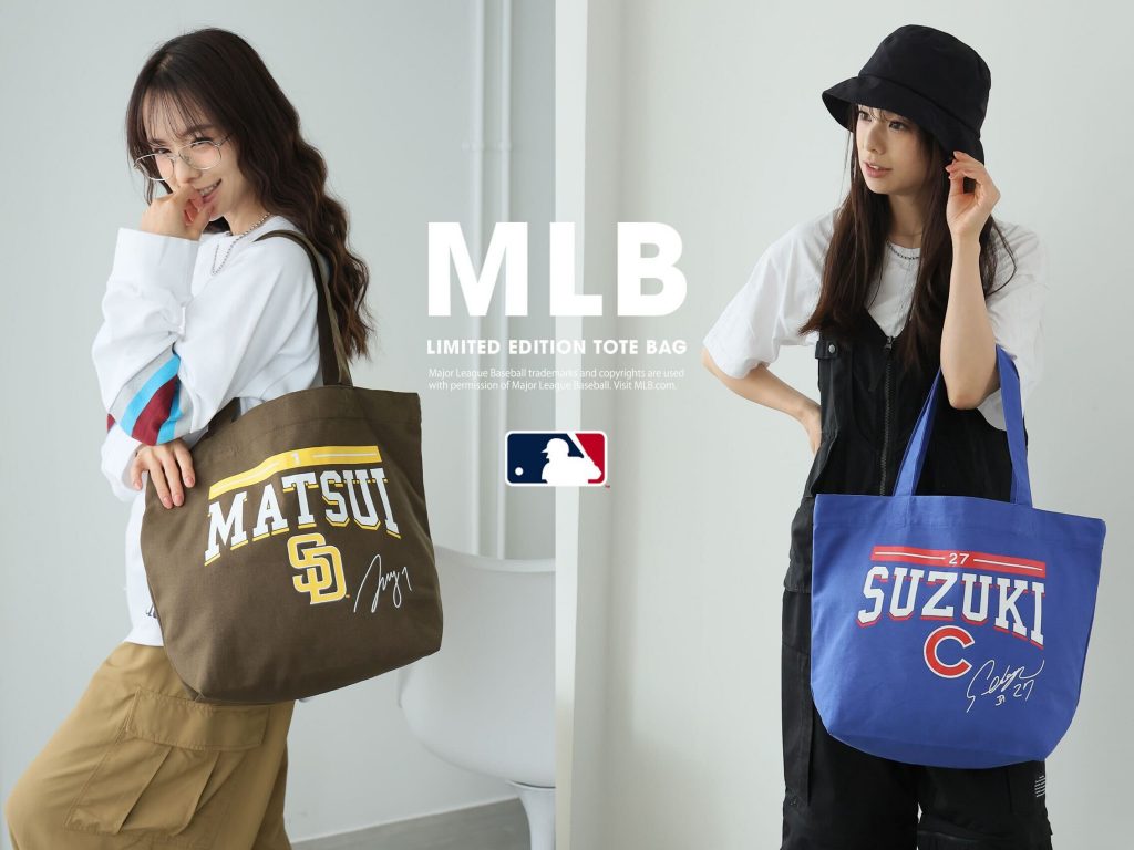 松井選手、鈴木選手のお名前、背番号、サインがデザインされたトートバッグを7月下旬から発売致します。