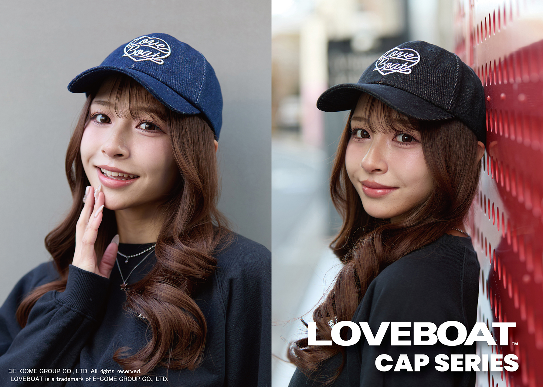 LOVEBOATのアイコンロゴをハートで大胆に表現したキャップシリーズ。
